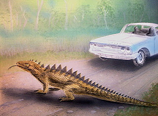 Nor are the two Congolese examples documented above the only dorsally-distinctive crypto-reptiles on record from Africa. One day in summer 1961, missionary Cal Bombay and his wife were driving through the Rift Valley on their way to Nairobi, Kenya, when they had to pull up sharply in order to avoid hitting an extremely large reptile apparently sunning itself in the middle of the road. The Bombays estimated that the creature, which was dark grey in colour, measured around 10 ft long, had a snake-like head, four stubby legs, and, most remarkable of all, bore a series of diamond-shaped serrations running down its entire mid-dorsal line, from the back of its head to the tip of its tail.