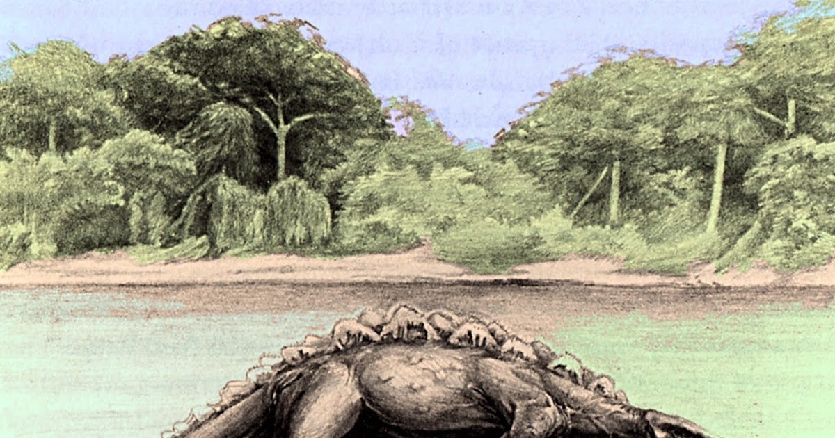 It took place one clear sunny day in November 1971, when Ellis was journeying north in his 30-ft-long motorised canoe on the Motaba River. Suddenly he spied a huge, elongated, snake-like creature with a series of ridges like the edge of a saw running the length of its back. It was moving just across the river from the right bank, only around 100 ft away. Turning off his canoe’s engine, an astonished Ellis watched as the creature, which he could see was at least as long as his canoe, swam slowly across the river to its left bank, onto which it clambered, crawling through the thick grass and then disappearing into the jungle.
