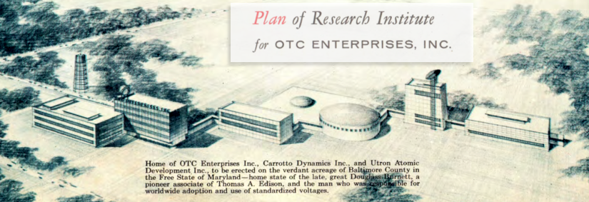 Wilfred C. “Bud” Gosnell was a prominent Baltimore businessman in his mid-fifties who had served in the Army during World War II, retiring as lieutenant colonel. Gosnell was friends with Ralph Elsmo, who told him about the exciting new client signed by his advertising business, Otis T. Carr, a fellow member in their Alcoholics Anonymous group. Gosnell was interested and given a tour of the OTC offices, and heard the origin story from Otis himself. Carr told Gosnell that he’d been working to perfect his engine for about twenty years and had filed a patent in 1949 for the “Utron Electric Accumulator,” which he’d developed while partnered with the Glenn L. Martin Company. Carr said he built a small working model in 1952, but that the project ended when an airplane crash killed officials from the company. OTC Enterprises would now complete what he started then, but he needed financial backing. Gosnell found Carr’s stories persuasive, so he invested his first $1,000 in the company, and went further still. He took a leave of absence from his job, joining OTC Enterprises full-time as sales manager without salary. He would be repaid and rewarded when the company succeeded.