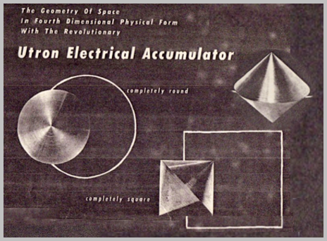 Carr was portrayed as bigger than life, the successor to great scientists and inventors from Galileo to Einstein, and as the creator of the solution to power sources, “free energy” produced by the “Carrotto Gravity Motor.” The limitless energy from it could power anything. Carr’s most sensational invention was powered by the “Utron Electric Accumulator,” described as “a fourth dimensional space vehicle… the OTC-X1 circular-foil spacecraft…” In other words, a flying saucer.