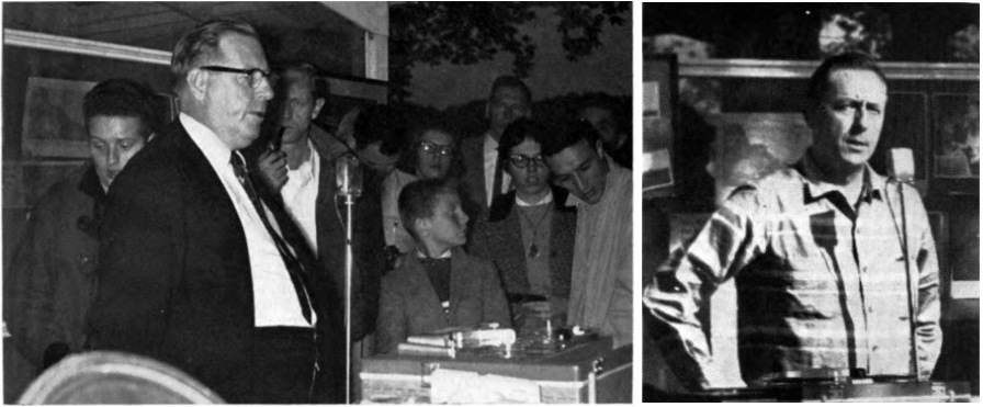 Carr and Aho toured throughout the country in September and October, appearing at high schools, Masonic temples, civic clubs – anywhere, for anyone that would host them. On Oct. 12, Carr and Aho spoke in Kansas City, MO, for the U.F.O. Study Club. Members asked what he thought he might be on the moon and Carr replied, “We expect to find bases there established by beings from other worlds.”