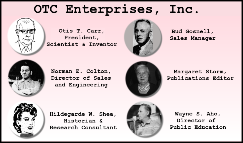 After PS, Colton went into advertising and promotion for Ralph Elsmo and Associates, then in June of 1957, given the job of editing a brochure for OTC Enterprises. Colton was about 43 years old at the time, and later said, “I was brought into the picture when Mr. Carr was ready to put some of these discoveries and accomplishments policies and objectives on paper… brochures, mailing literature…” Carr could confidently talk about his notions, but much of what he said was incomprehensible. He was the “talent” while Colton served as manager, handler, and sometimes, his interpreter. Colton was effective in promoting Carr’s message in dynamic comprehensible terms, so the two were made a good partners, like a barker and a carnival act.