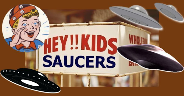 The flying saucer and Martians of the UK’s the Royal Air Force Maintenance Command for: UFOs: Real True Hoaxes of Advertising.