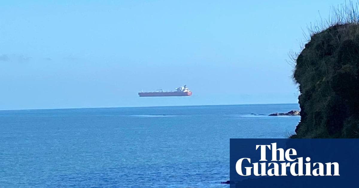 David Morris, who captured the extraordinary sight on camera, declared himself “stunned” when he noticed a giant tanker floating above the water as he looked out to sea from a hamlet near Falmouth in Cornwall.